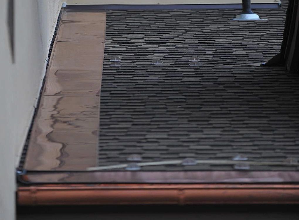 1 run of heat cable in flat metal flashing
